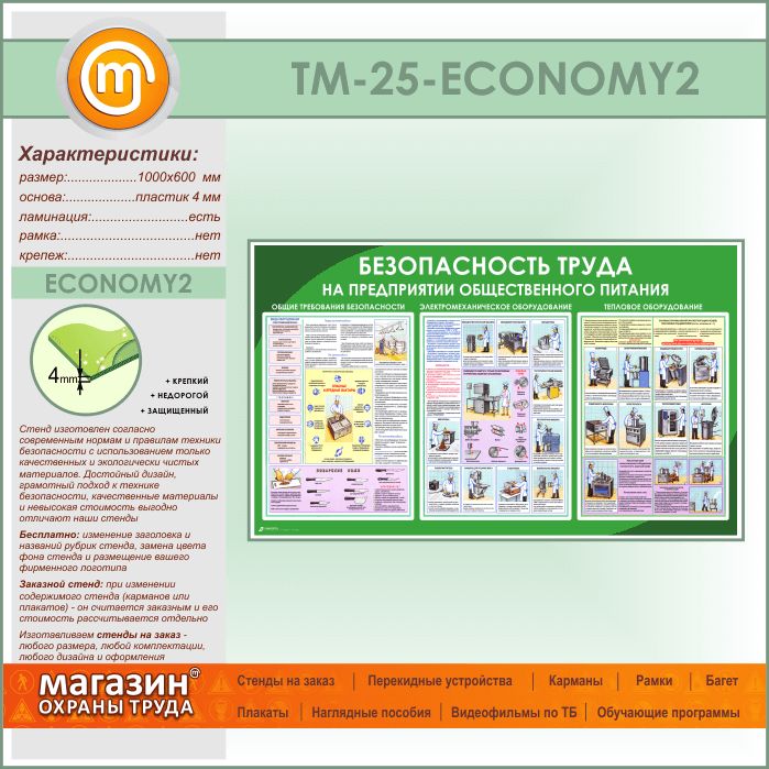 Стенд «Безопасность труда на предприятиях общественного питания» (TM-25-ECONOMY2)