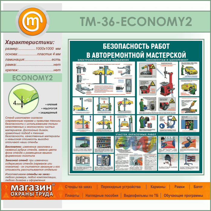 Стенд «Безопасность работ в авторемонтной мастерской» (TM-36-ECONOMY2)