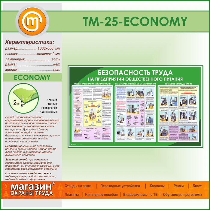 Стенд «Безопасность труда на предприятиях общественного питания» (TM-25-ECONOMY)