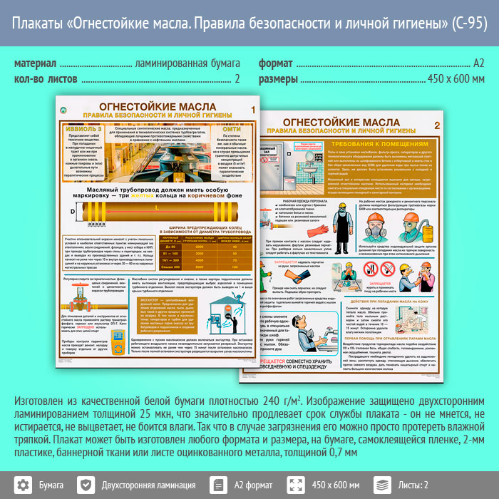 Плакаты «Огнестойкие масла. Правила безопасности и личной гигиены» (С-95, ламинированная бумага, А2, 2 листа)