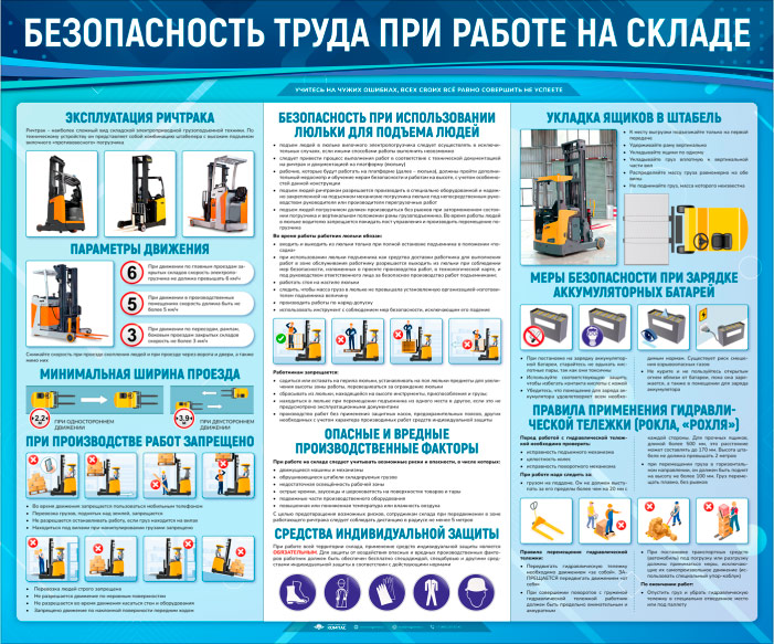 Стенд «Безопасность труда при работе на складе» (TM-44) содержит информацию о безопасной работе на складе.