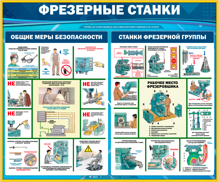 Стенд «Фрезерные станки» (TM-06) содержит информацию о правилах работы с фрезерными станками.
