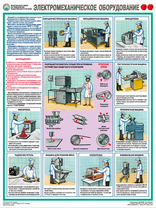 - Плакат «Электромеханическое оборудование» – это техника безопасности при работе на кухонной электрической технике – опасные зоны и правила работы