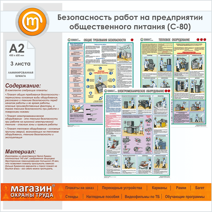 Комплект плакатов «Безопасность работ на предприятии общественного питания» из 3 листов – достойное качество и полезная информация по приемлемой цене