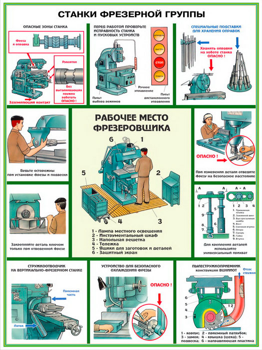 - Плакат «Станки фрезерной группы» – рабочее место фрезеровщика и безопасность при выполнении работ