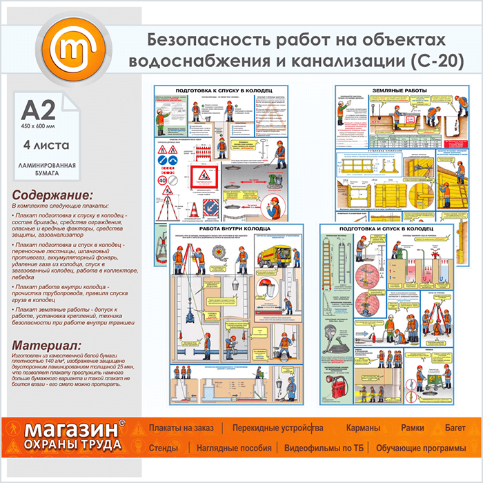 Комплект плакатов «Безопасность работ на объектах водоснабжения и канализации» из 4 листов – достойное качество и полезная информация по приемлемой цене