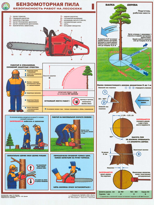- Плакат «Устройство бензопилы и валка деревьев»