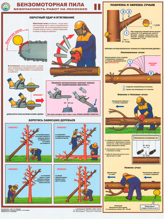 - Плакат «Обратный удар и втягивание, подрезка и обрезка сучьев»