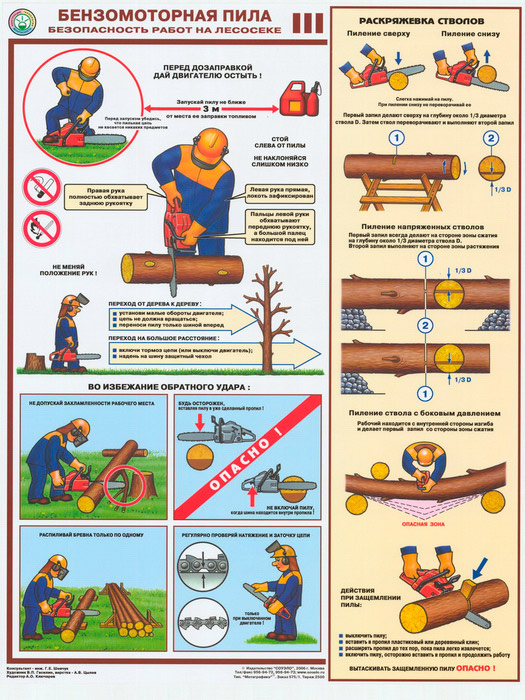 Комплект плакатов «Бензомоторная пила. Безопасность работ на лесосеке» из 3 листов – достойное качество и полезная информация по приемлемой цене