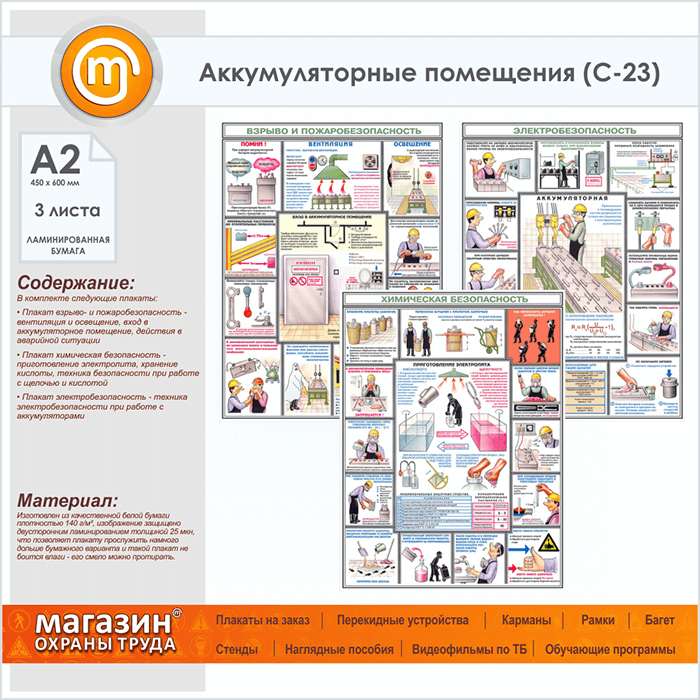Плакаты «Аккумуляторные помещения» (С-23, ламинированная бумага, А2, 3 листа)