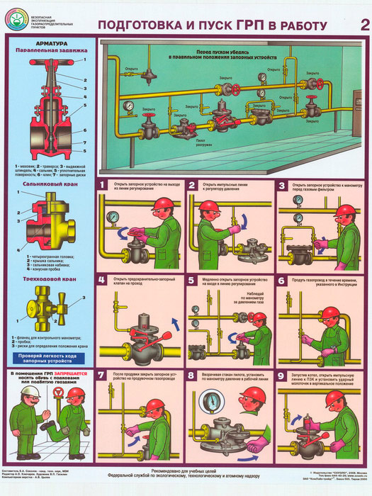 - Плакат «Подготовка и пуск ГРП в работу» – подготовка оборудования и порядок запуска ГРП