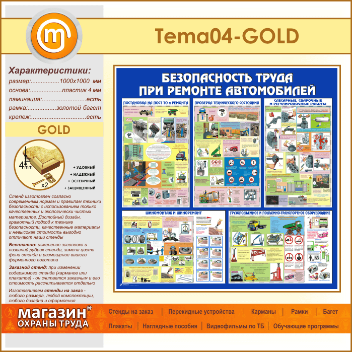 Стенд «Безопасность труда при ремонте автомобилей» (TM-04-GOLD)
