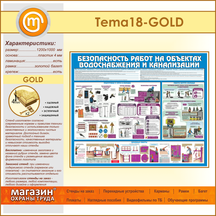Стенд «Безопасность работ на объектах водоснабжения и канализации» (TM-18-GOLD)