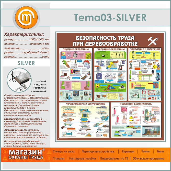 Стенд «Безопасность труда при деревообработке» (TM-03-SILVER)