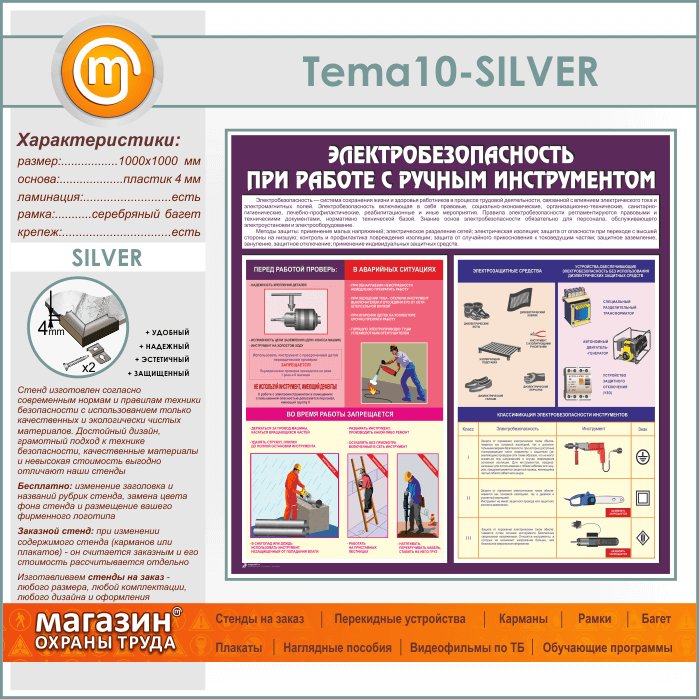 Стенд «Электробезопасность при работе с ручным инструментом» (TM-10-SILVER)