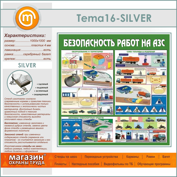 Стенд «Безопасность работ на автозаправочных станциях» (TM-16-SILVER)