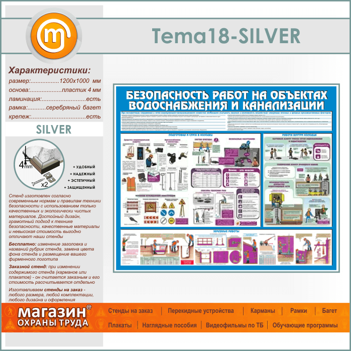 Стенд «Безопасность работ на объектах водоснабжения и канализации» (TM-18-SILVER)