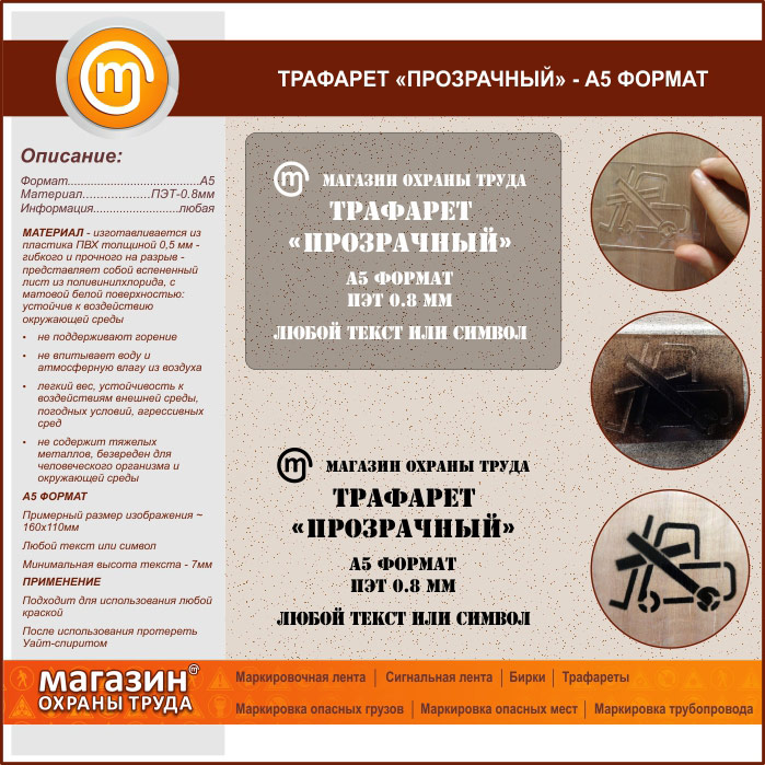Трафарет «ПРОЗРАЧНЫЙ» (А5 формат, ПЭТ 0,8 мм)