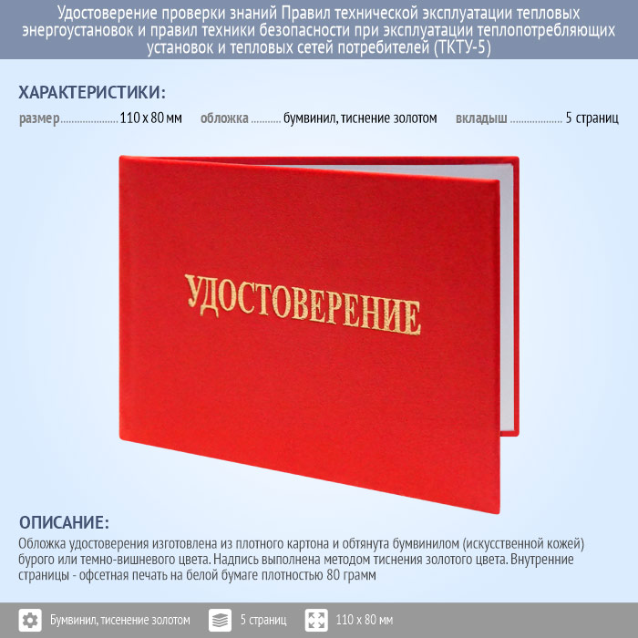 Бланк удостоверения проверки знаний Правил технической эксплуатации тепловых энергоустановок и правил техники безопасности при эксплуатации теплопотребляющих установок и тепловых сетей потребителей (ТКТУ-5)