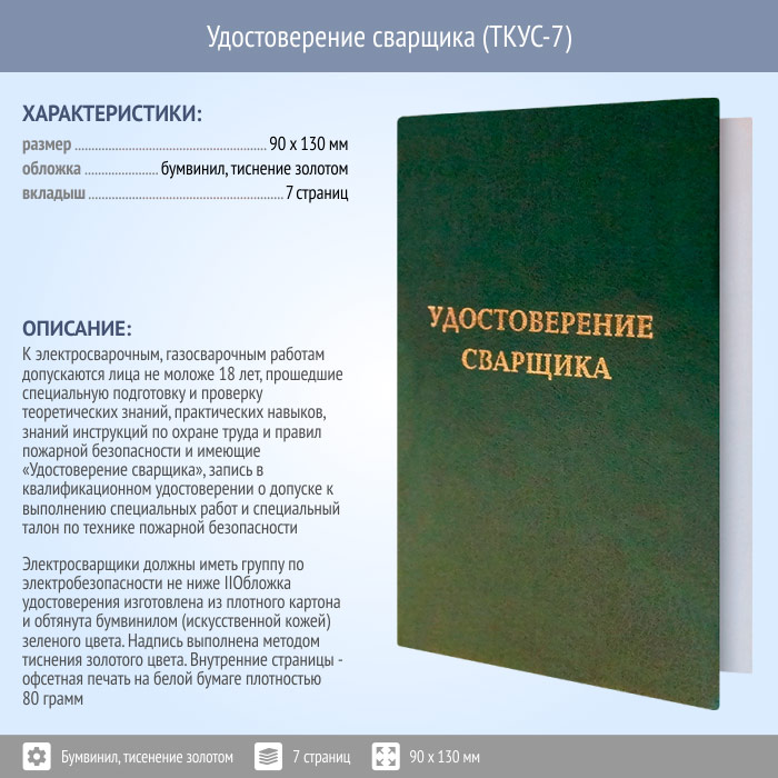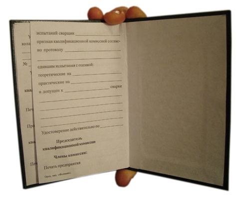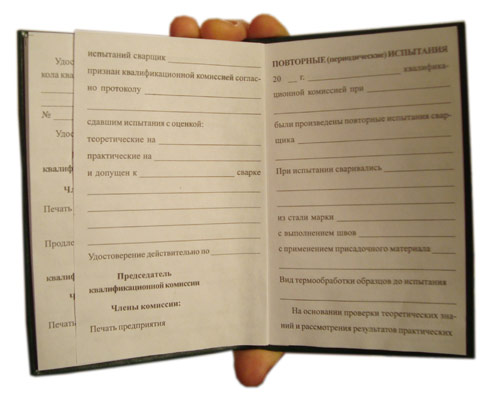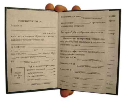 Бланк удостоверения сварщика (ТКУС-7)