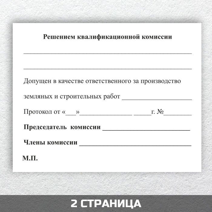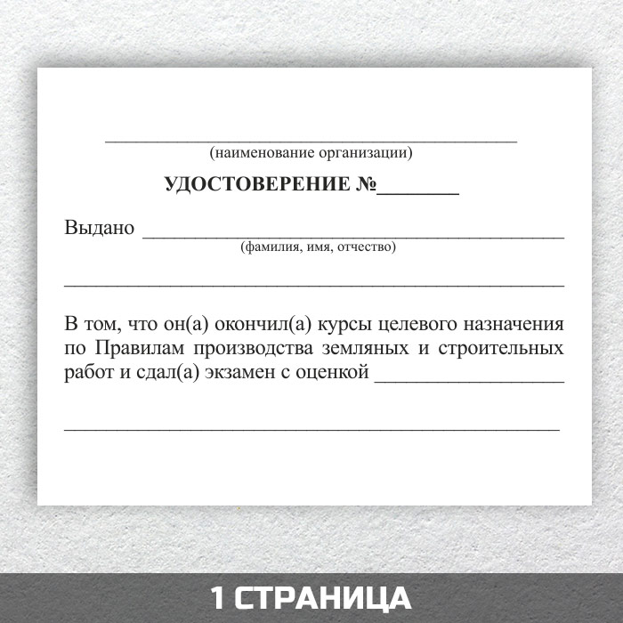 Бланк удостоверения о допуске на производство земляных работ
