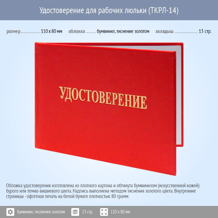Бланк удостоверения для рабочих люльки (ТКРЛ-14)