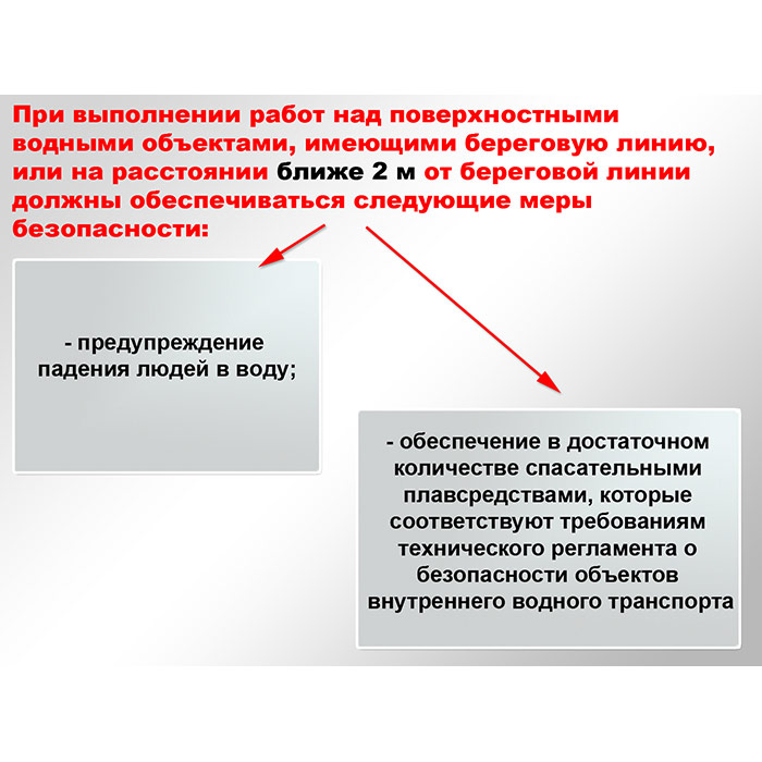 - Требования по охране труда при работе над водой;