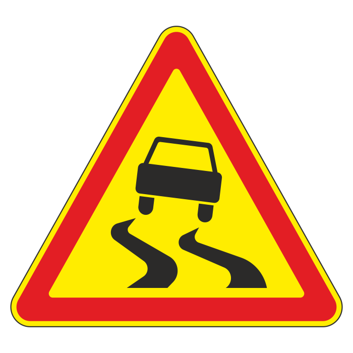 Знак устанавливают перед участками дорог, на которых коэффициент сцепления шины с покрытием, измеренный в соответствии с ГОСТ 30413, составляет менее 0,4. Водитель обязан снизить скорость