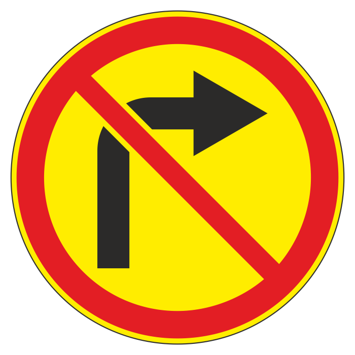 Дорожный знак 3.18.1 «Поворот направо запрещен» (временный) (металл 0,8 мм, I типоразмер: диаметр 600 мм, С/О пленка: тип Б высокоинтенсивная)