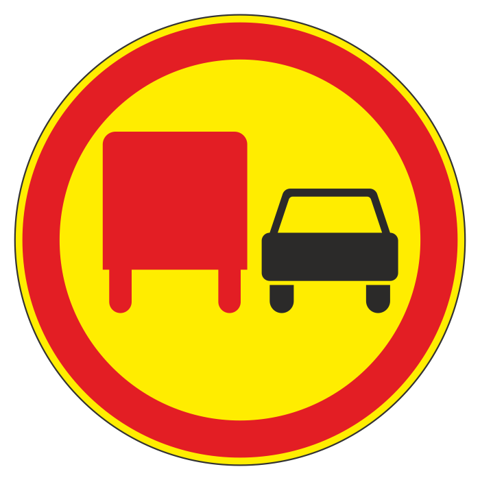 Дорожный знак 3.22 «Обгон грузовым автомобилям запрещен» (временный) (металл 0,8 мм, II типоразмер: диаметр 700 мм, С/О пленка: тип А инженерная)