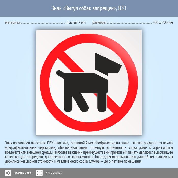 Знак «Выгул собак запрещен», B31 (пластик, 200х200 мм)
