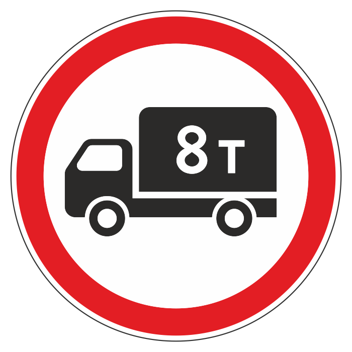 Знак запрещает движение грузовых автомобилей с разрешенной максимальной массой указанной на знаке (при отсутствии массы на знаке - не более 3,5 тонн). Действие знака не распространяется на автомобили, предназначенные для перевозки людей
