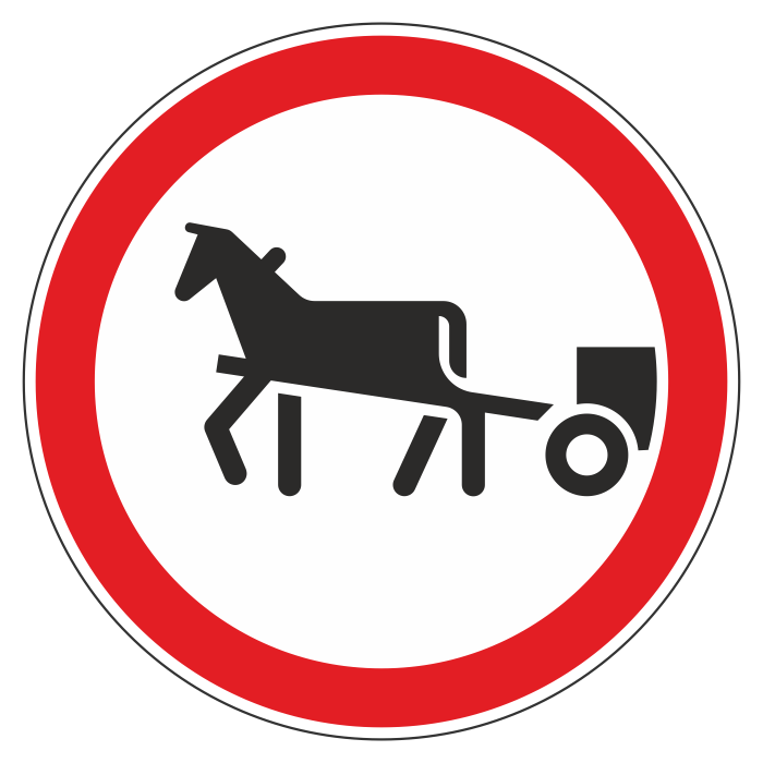 Знаком запрещается движение гужевых повозок любого типа, а также вьючных и верховых животных