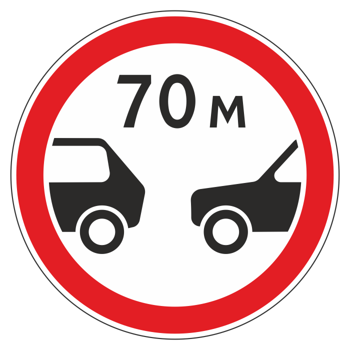 Знак устанавливает минимальную дистанцию между транспортными средствами. Действует до первого перекрёстка