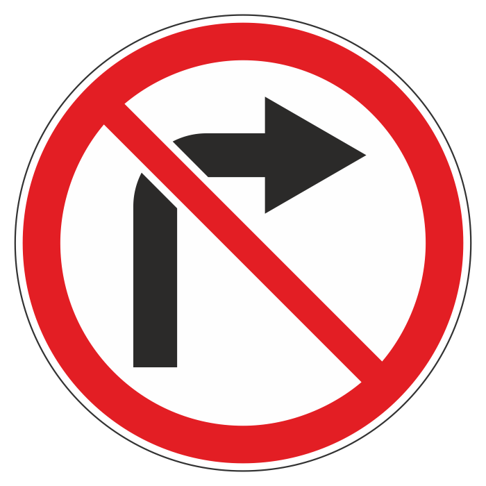 Дорожный знак 3.18.1 «Поворот направо запрещен» (металл 0,8 мм, III типоразмер: диаметр 900 мм, С/О пленка: тип В алмазная)