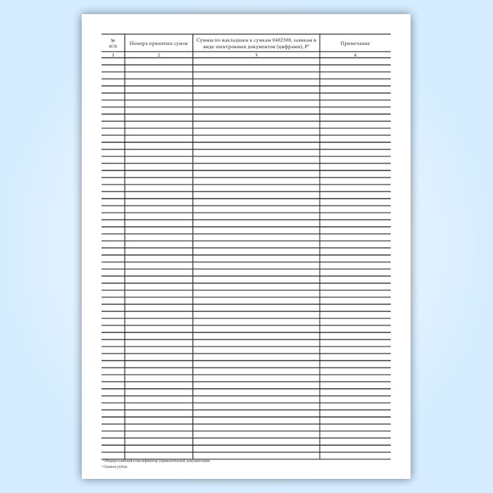 Журнал учета принятых сумок и порожних сумок (форма по ОКУД 0402301)