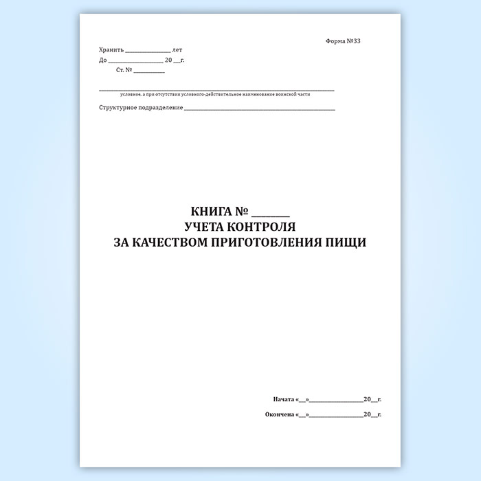 Книга учета контроля за качеством приготовления пищи (форма 33)