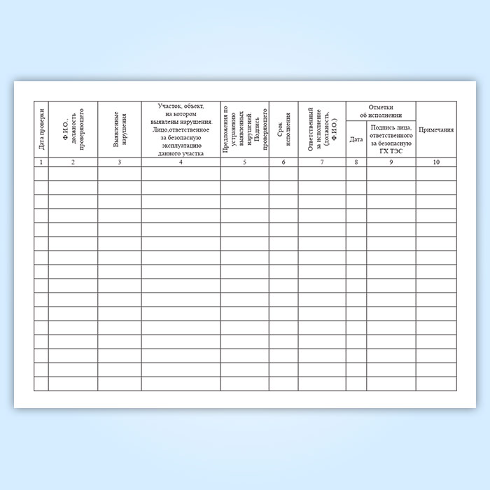 Графы журнала контроля за соблюдением требований Правил безопасности систем газораспределения и газопотребления (четвертая ступень):
