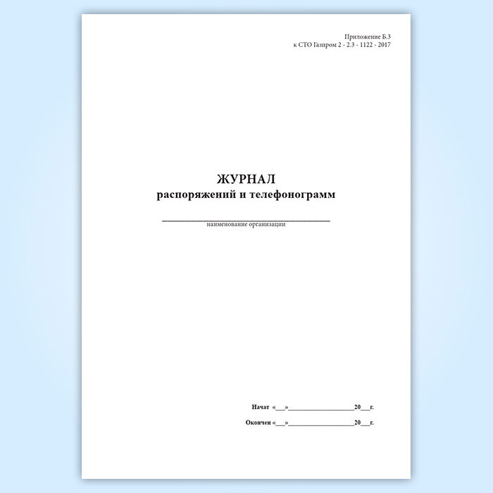 Форма журнала распоряжений и телефонограмм соответствует Приложению Б.3 к СТО Газпром 2 - 2.3 - 1122 - 2017