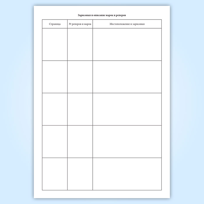 Зарисовки и описание марок и реперов