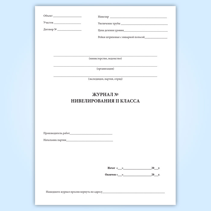 Журнал нивелирования II класса (Форма УТ-8) имеет графы: