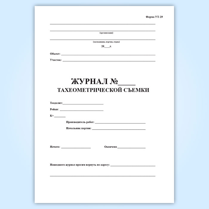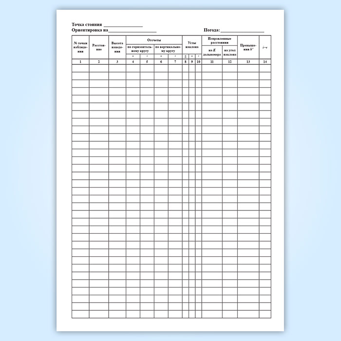 См. также: Журнал тахеометрической съемки (Форма Ф-7), Полевой журнал тахеометрической съемки