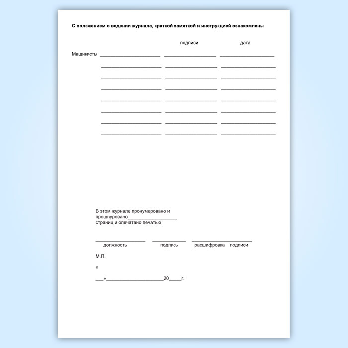 Ответственность за сохранность журнала во время эксплуатации несет машинист.