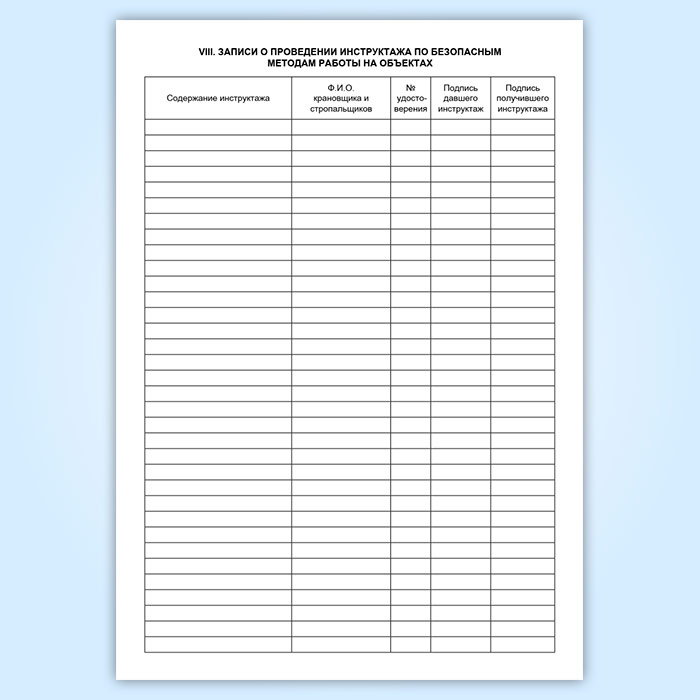 Записи о проведении инструктажа по безопасным методам работы на объекте.