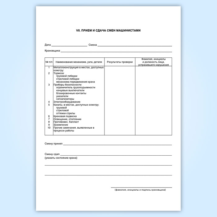 VII. Прием и сдача смен машинистами