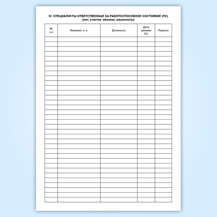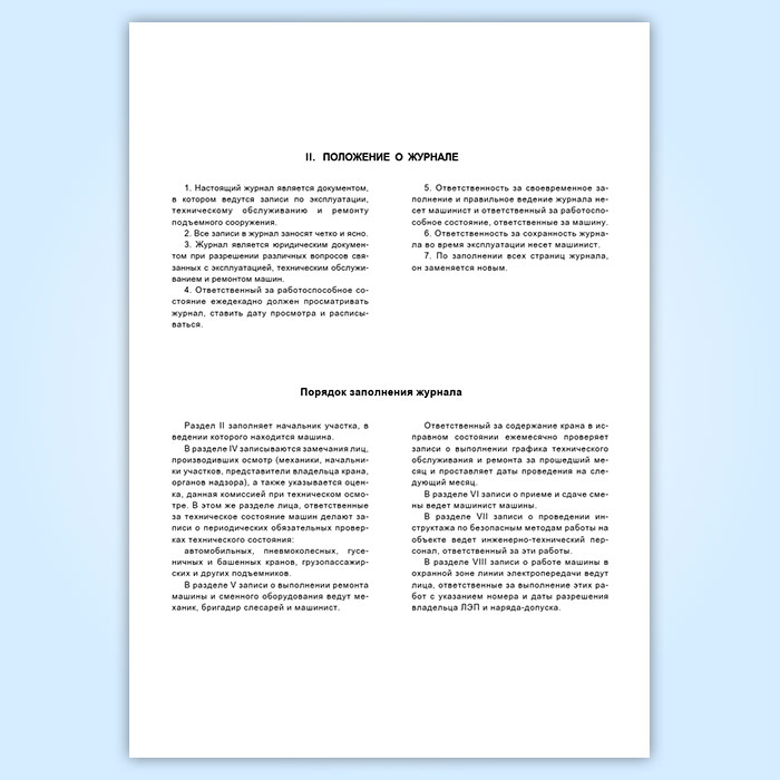 Ответственность за своевременное заполнение и правильное ведение журнала несет машинист и ответственный за работоспособное состояние, ответственные за машину.