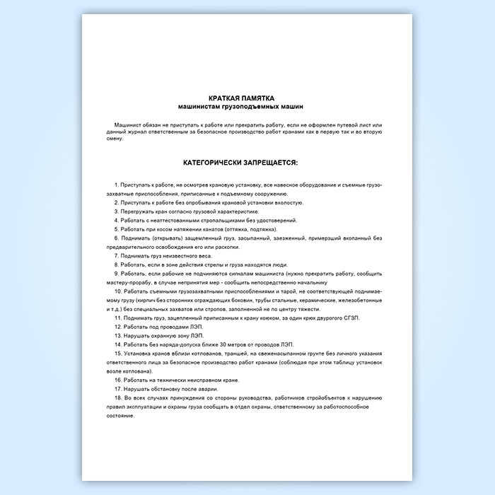 Журнал подъемного сооружения