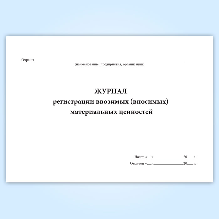 Журнал регистрации ввозимых (вносимых) материальных ценностей