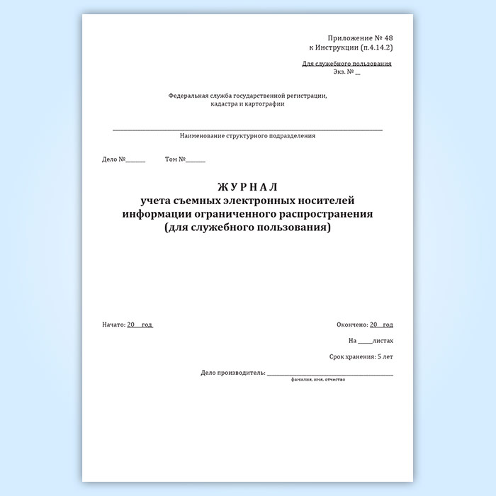 Журнал учета съемных электронных носителей информации ограниченного распространения (для служебного пользования)
