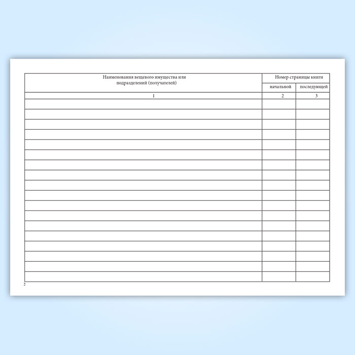 В книге отводятся отдельные листы на каждое наименование выдаваемого вещевого имущества или на каждое подразделение (сотрудника), его получающее.